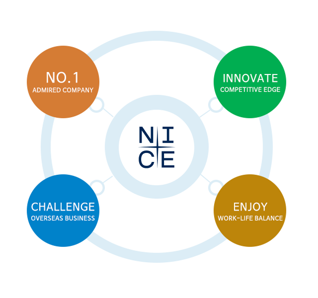 NICE GROUP의 모든 임직원은 이러한 가치체계를 생각과 행동의 근원으로 삼아 고객으로부터 신뢰받는 기업이 되고자 합니다